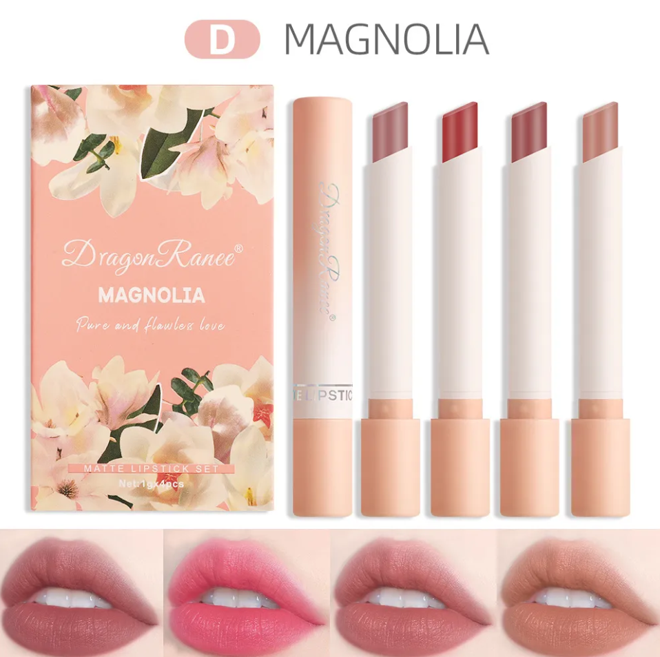 Набор мини матовых помад для губ 4 шт. DRAGON RANEE. Оттенок MAGNOLIA информация: