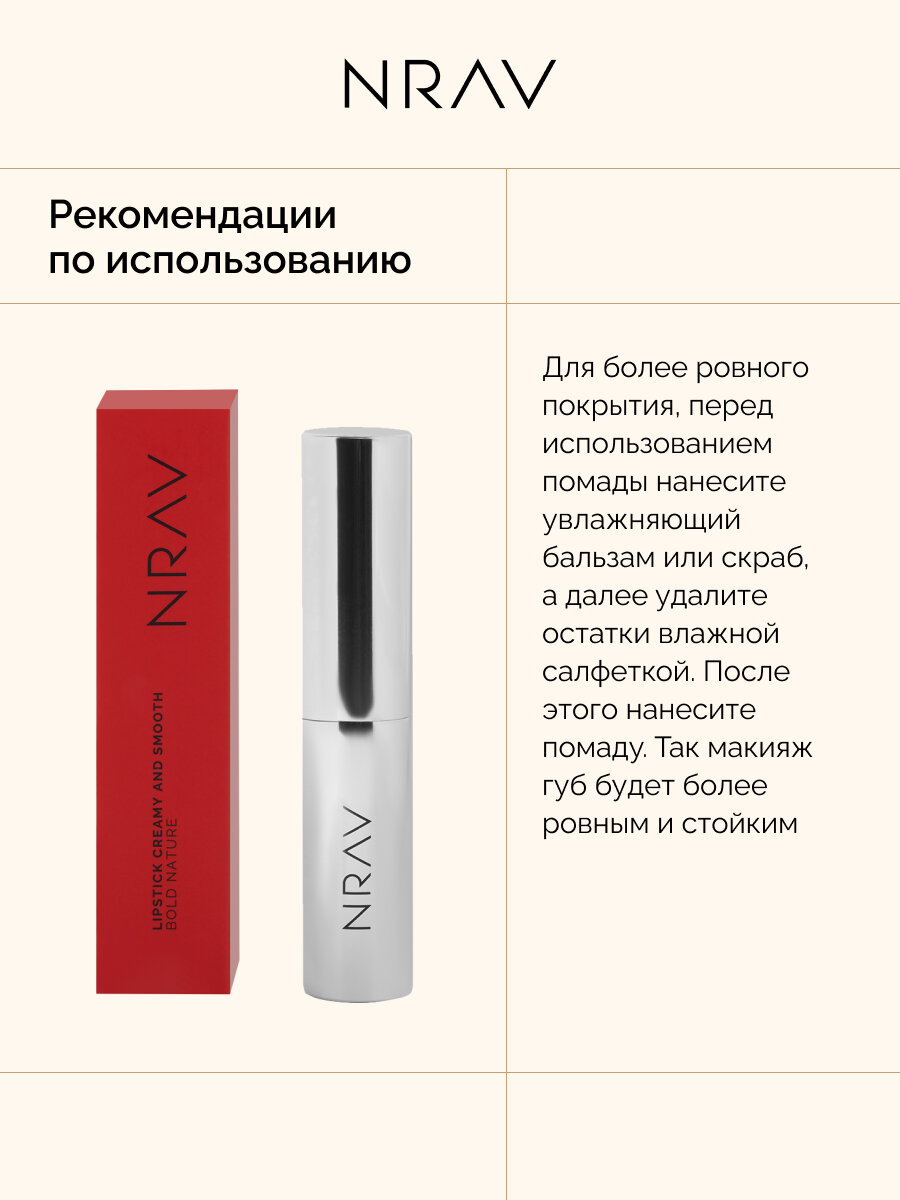 Помада для губ NRAV, кремовая, стойкая, матовая, колпачок магнитный, классический красный информация: