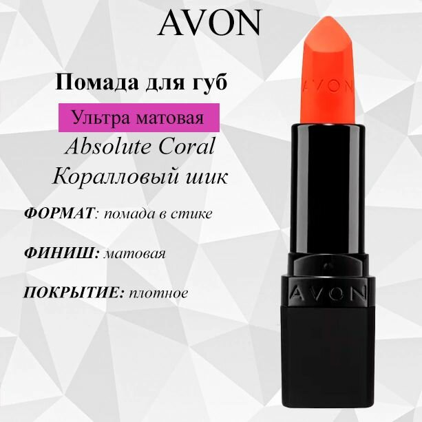 Отзывы на AVON/Эйвон Увлажняющая матовая губная помада "Ультра" Оттенок: Absolute Coral Коралловый шик