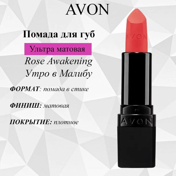 10 цен на AVON/Эйвон Увлажняющая матовая губная помада "Ультра" Оттенок: Rose Awakening Утро в Малибу