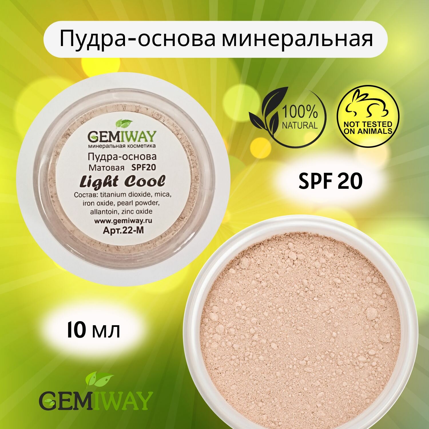 Пудра-основа минеральная "Light Cool" GEMIWAY (SPF 20) 10мл / 2г . Матовая, рассыпчатая, натуральная пудра для лица информация: