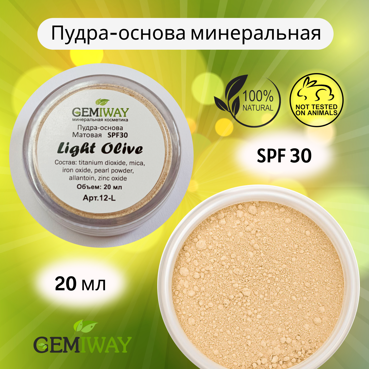 Пудра-основа матовая минеральная "Light Olive" GEMIWAY (SPF 30) 20 мл / 4 г . Рассыпчатая, натуральная пудра для лица информация: