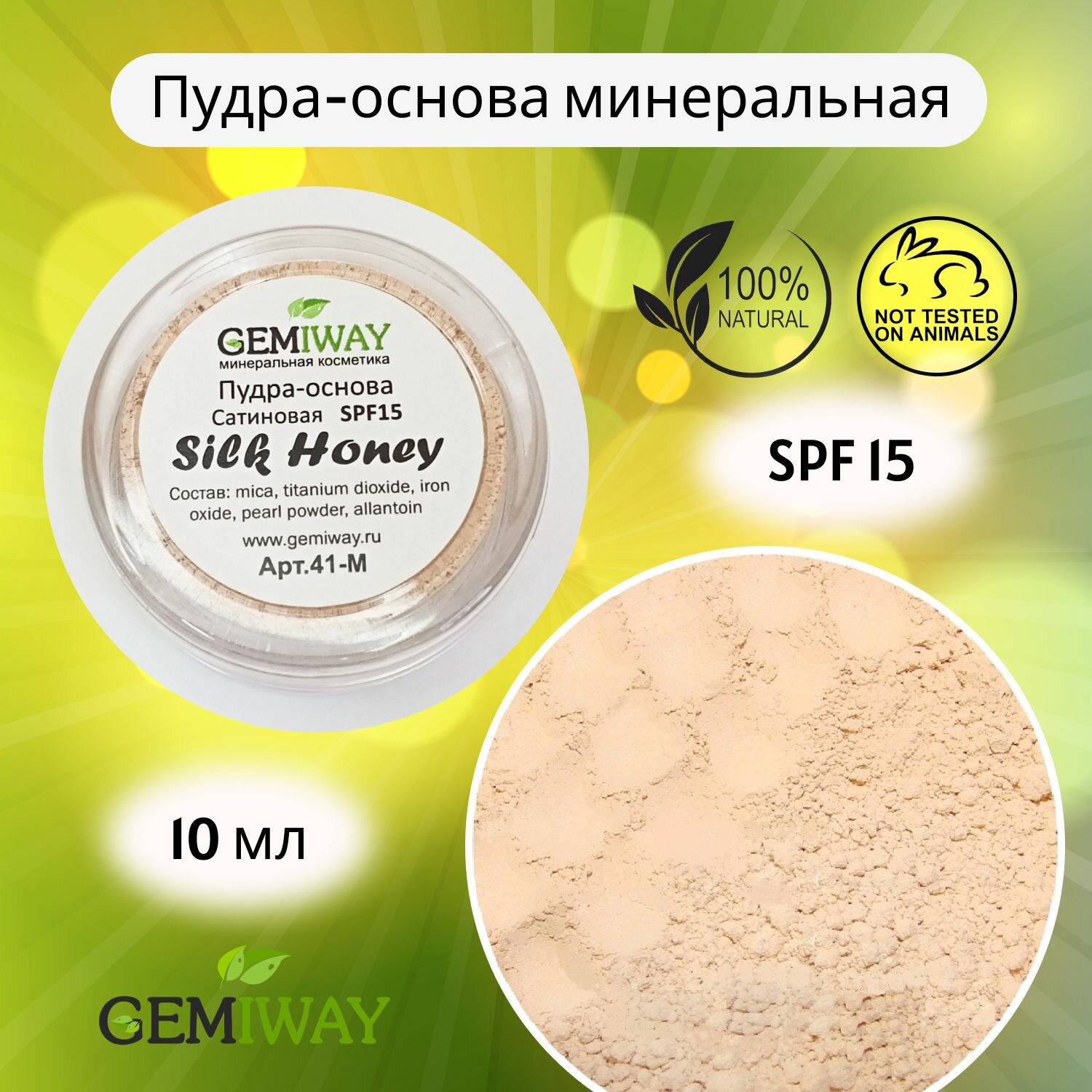 10 цен на Пудра-основа минеральная Сатиновая "Silk Honey" SPF 15, GEMIWAY 10мл / 2 г . 100% натуральная, рассыпчатая пудра
