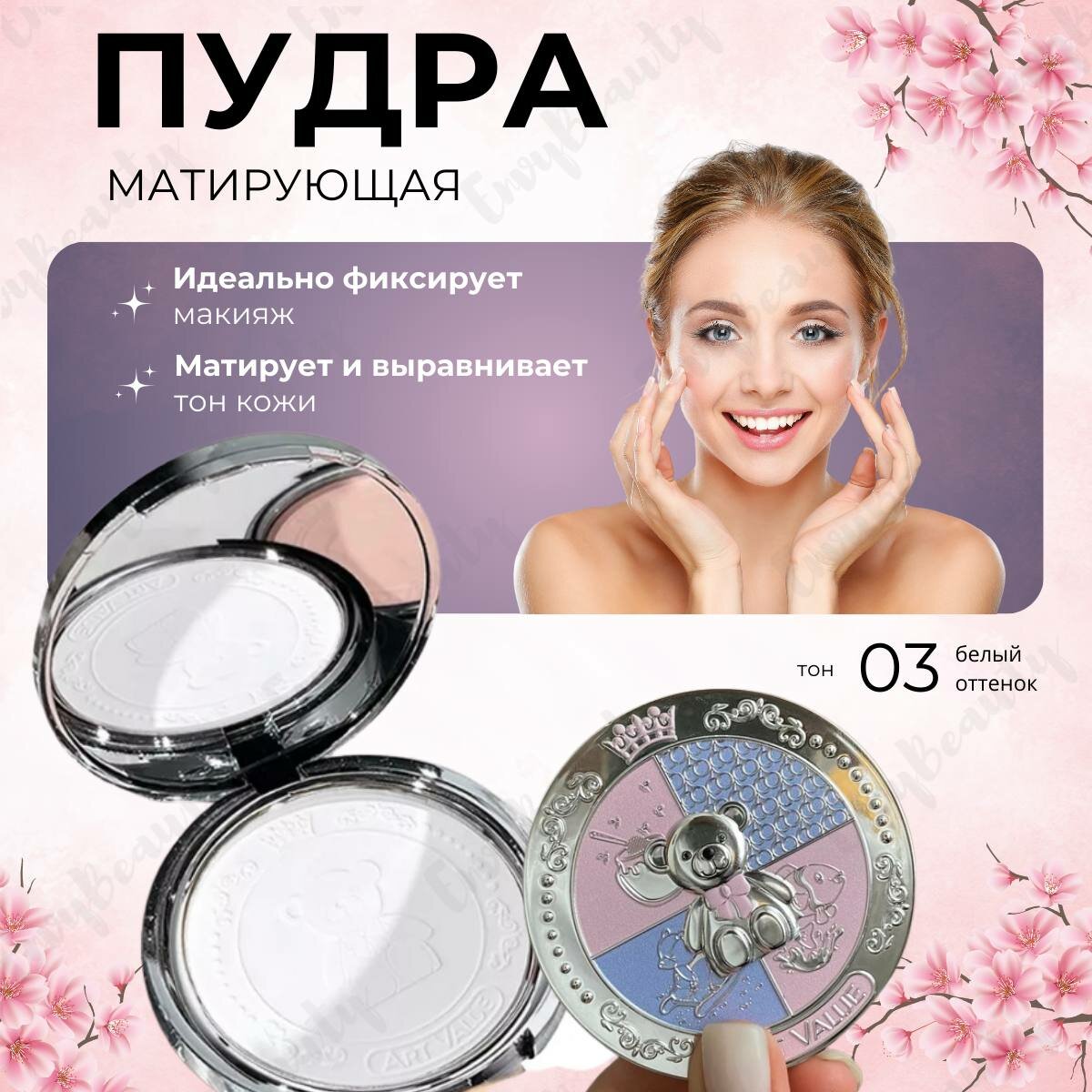 Пудра для лица матирующая с зеркалом для макияжа 03 информация:
