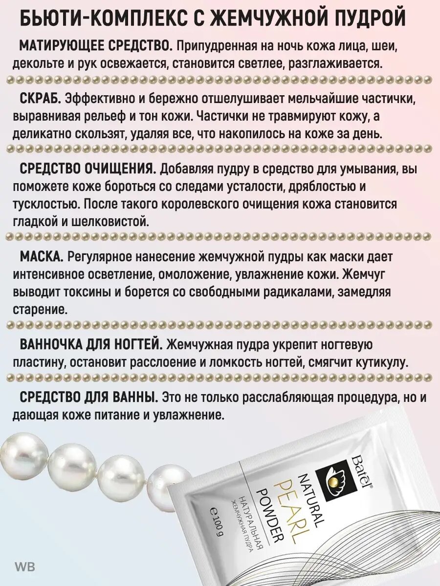 Натуральная жемчужная пудра, омолаживающее и питательное деуствие, 3 упаковки по 100 гр информация: