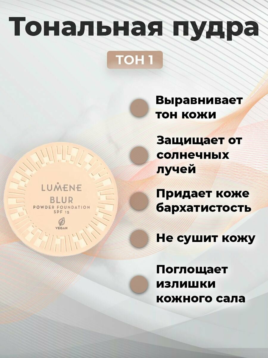 LUMENE Компактная тональная пудра BLUR Тон 2 Медовый-Бежевый Longwear Powder Foundation SPF15 10 г Финляндия информация: