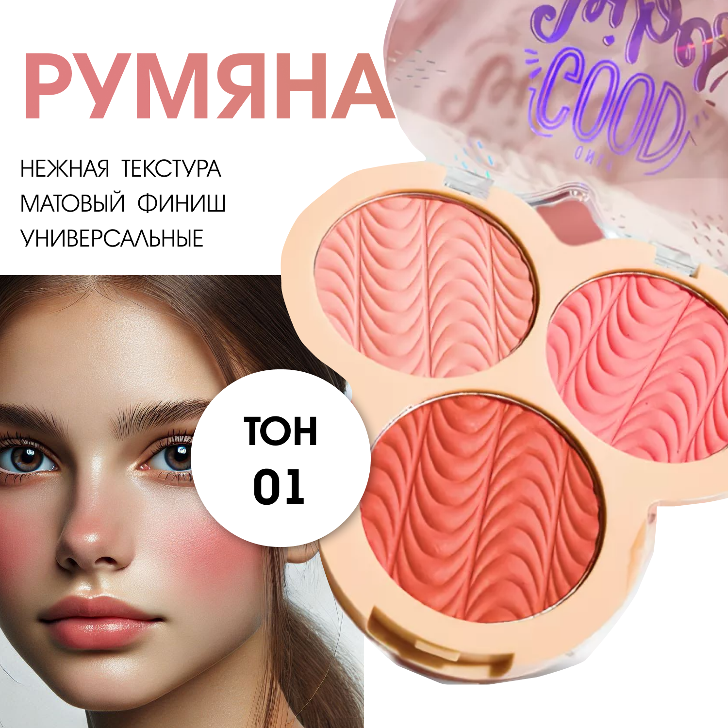 Румяна для лица сухие матовые 3 в 1 Sevencool ТОН 1 информация: