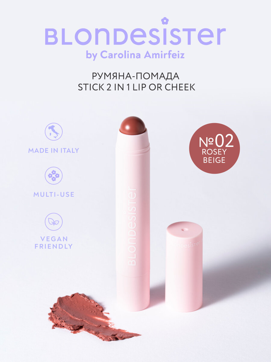 Румяна - помада для лица 2 в 1 BLONDESISTER LIP OR CHEEK тон 02 rosey beige кремовые информация: