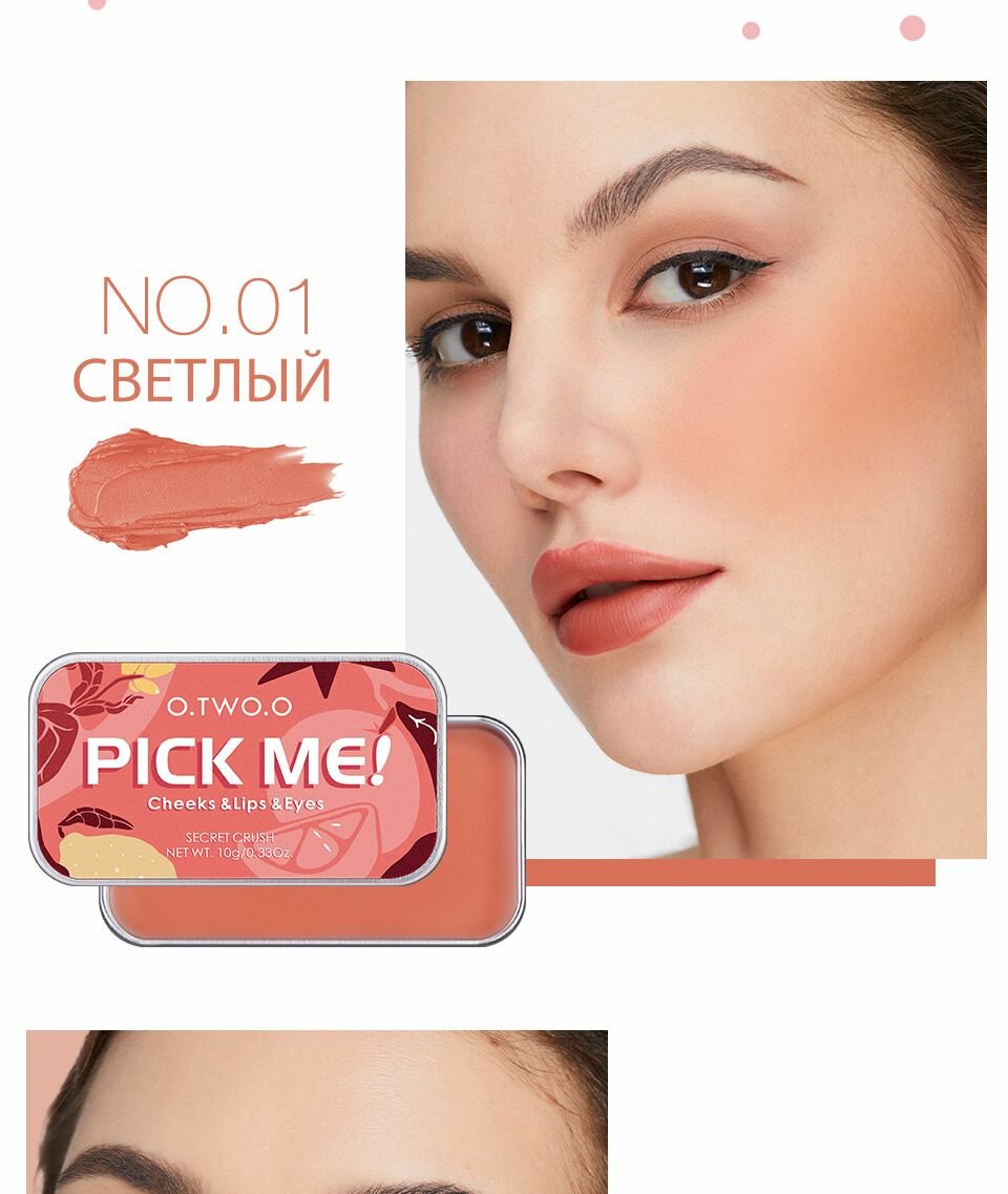 10 цен на Румяна для лица кремовые 3 в 1 O.TWO.O тон 01 Light Персиковый