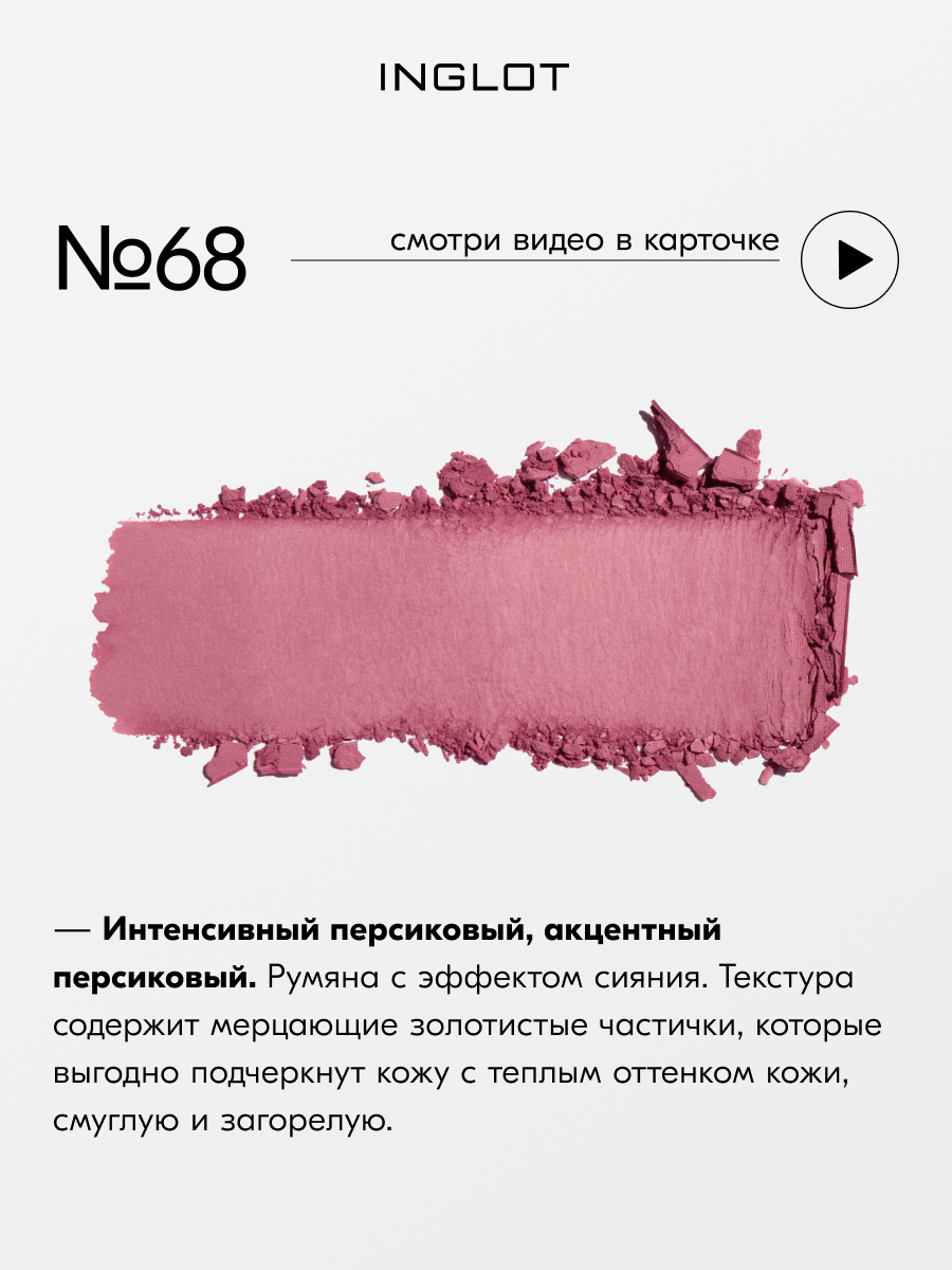 Отзывы на Румяна Inglot Freedom Luscious Cheek 6г — стойкие, без талька, шелковистая текстура, для чувствительной кожи, рефил №68