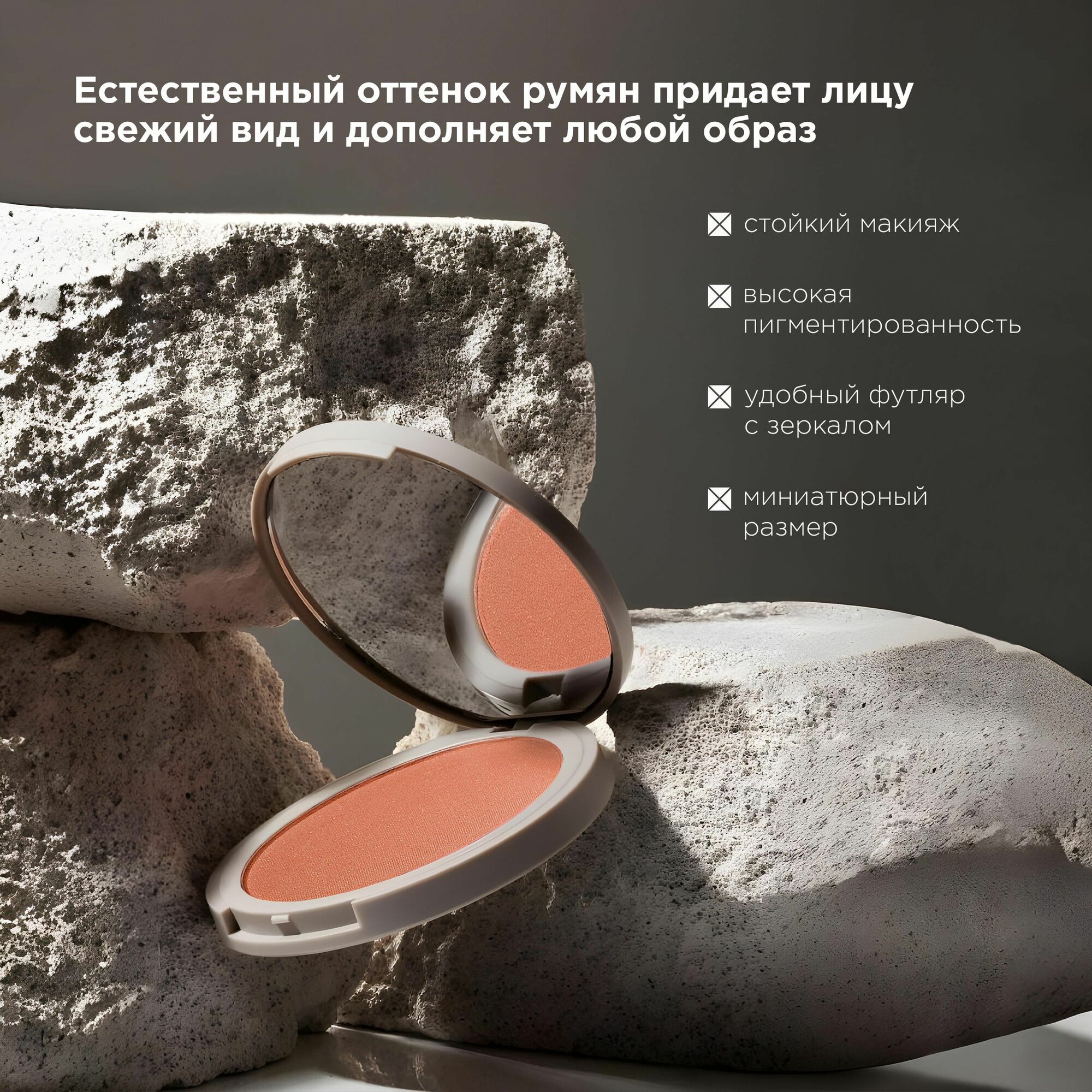 10 цен на Румяна для лица сияющие компактные MIXIT MAKE UP с шиммером, тон 02 персиковые. Декоративная косметика для макияжа