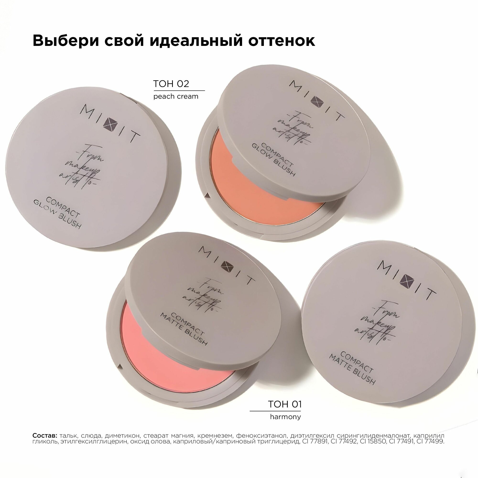 MIXIT Румяна для лица матовые компактные розовые, тон 01. Декоративная косметика для макияжа профессиональная MAKE UP. информация: