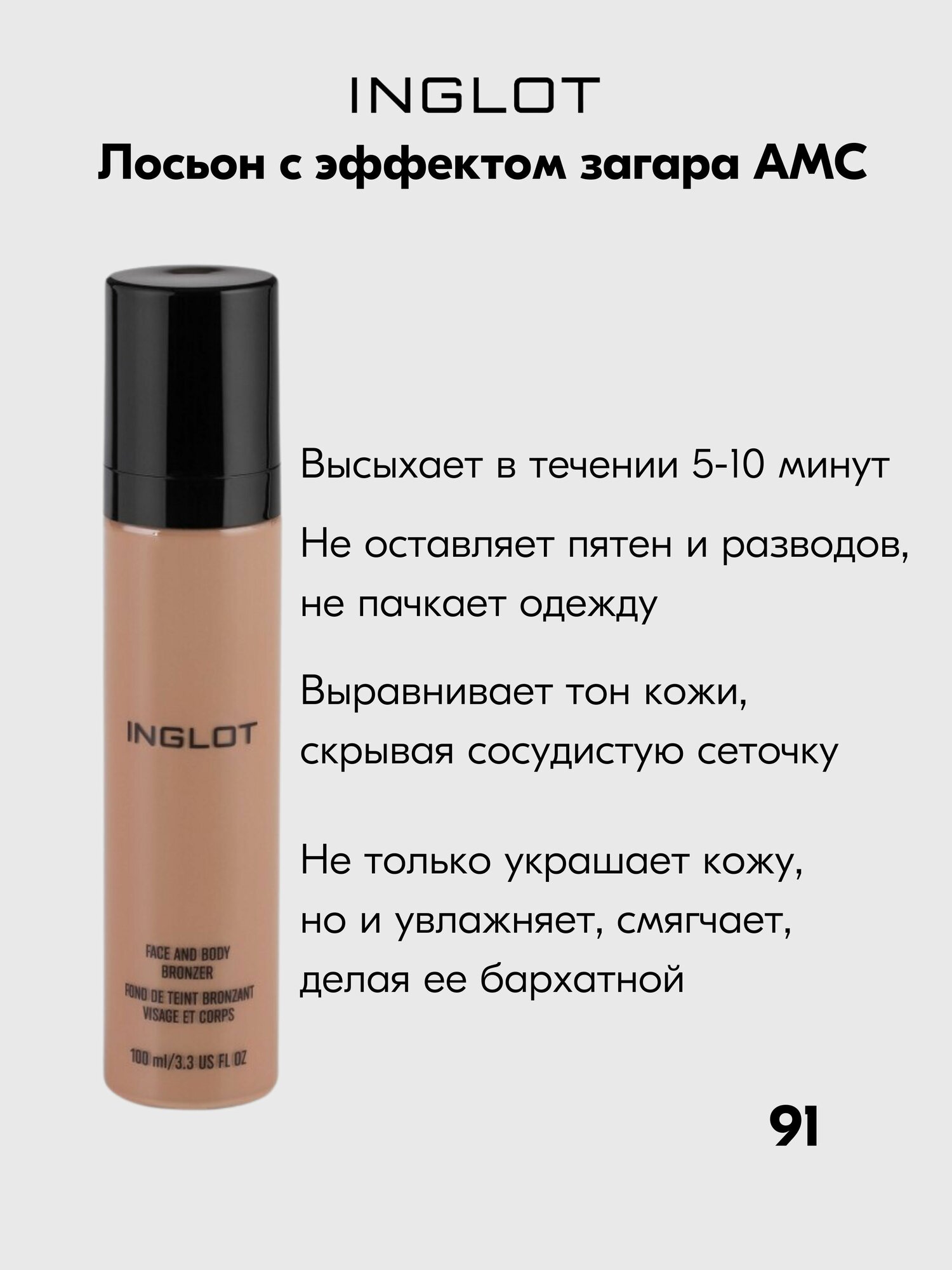 Отзывы на Крем с эффектом загара для лица и тела INGLOT лоcьон бронзер AMC Face and Body Bronzer №91