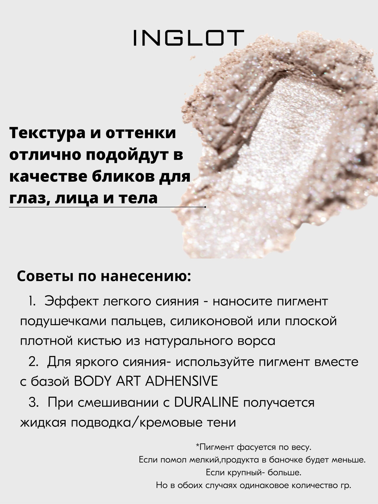 Отзывы на Пигмент INGLOT рассыпчатые тени для лица и тела EYE & BODY PIGMENT №180