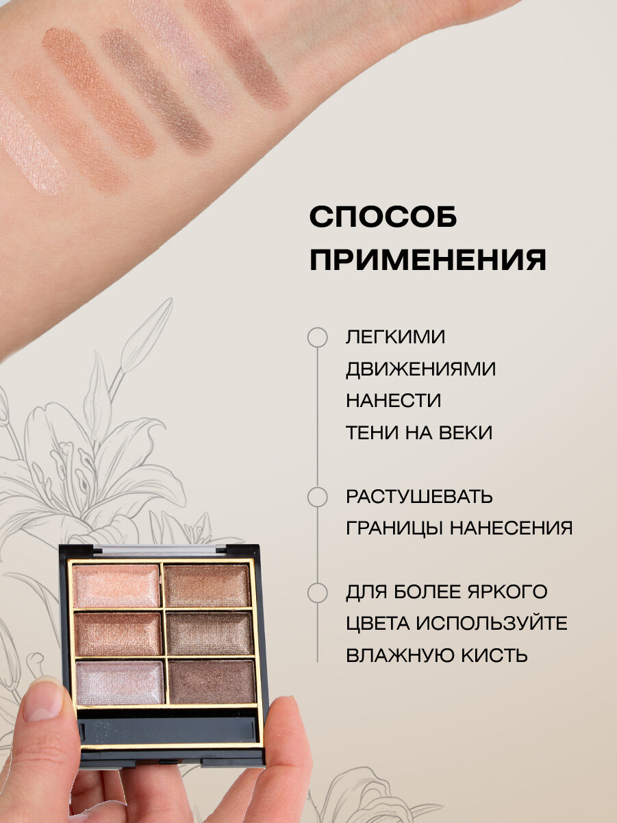 Палетка теней для век Farres компактные 6 цветов перламутровые, тон 04 информация: