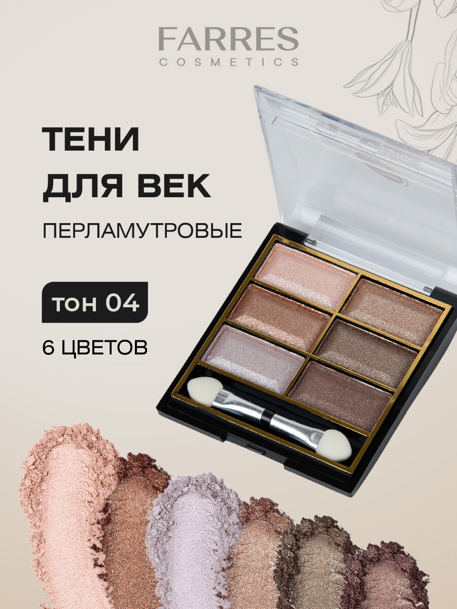 10 цен на Палетка теней для век Farres компактные 6 цветов перламутровые, тон 04