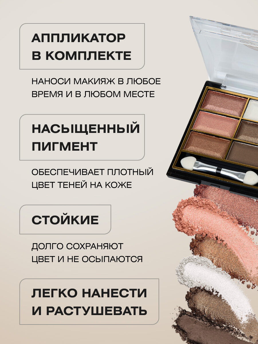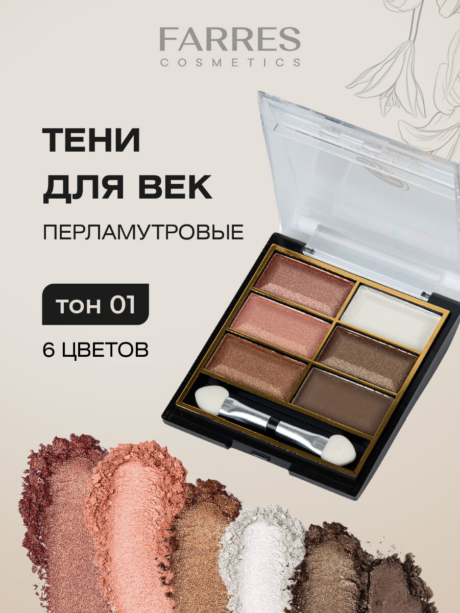 10 цен на Палетка теней для век Farres компактные 6 цветов перламутровые, тон 01