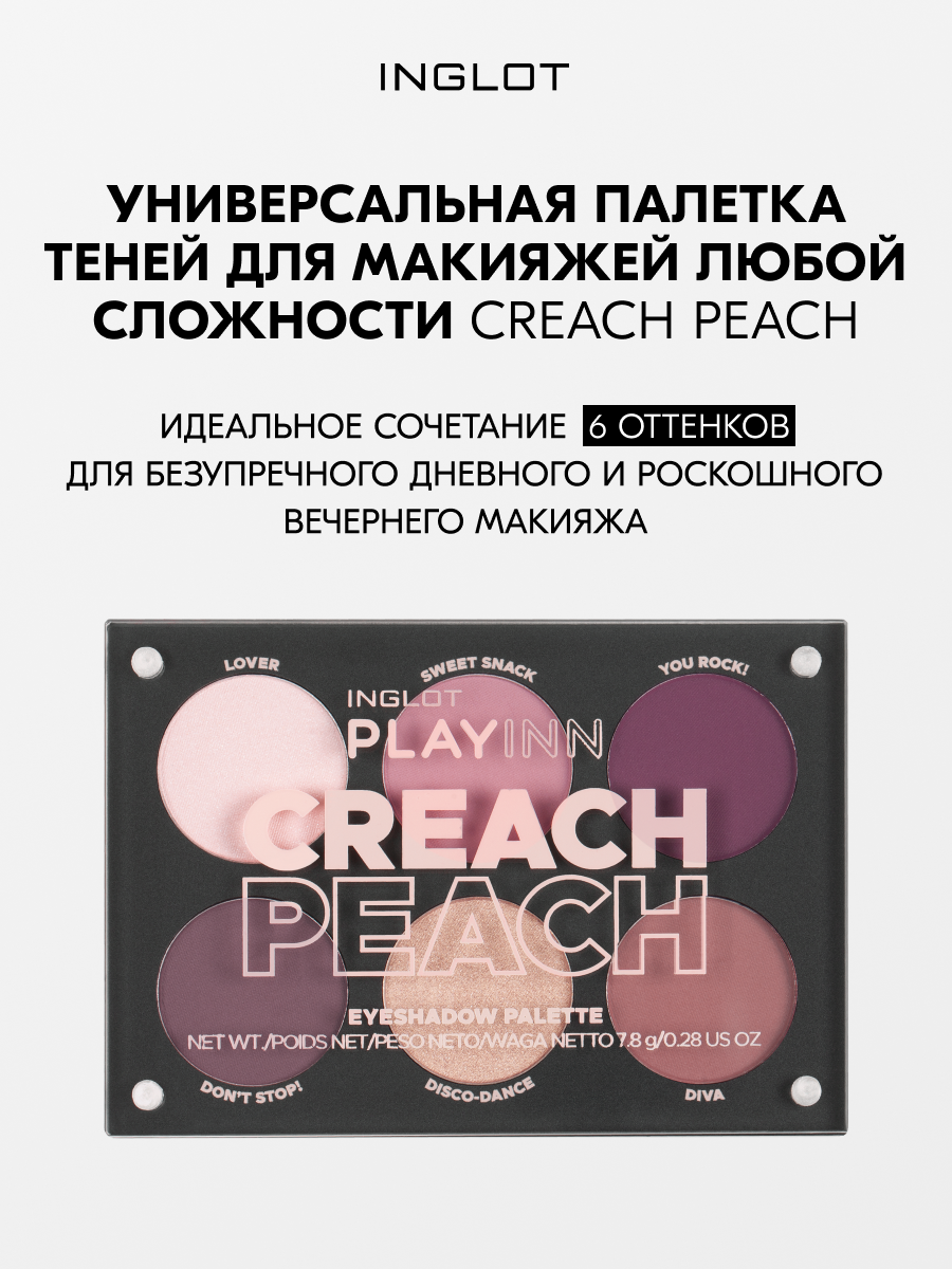 Профессиональная палетка теней базовые цвета INGLOT Eyeshadow Palette Creach Peach, 6 оттенков информация: