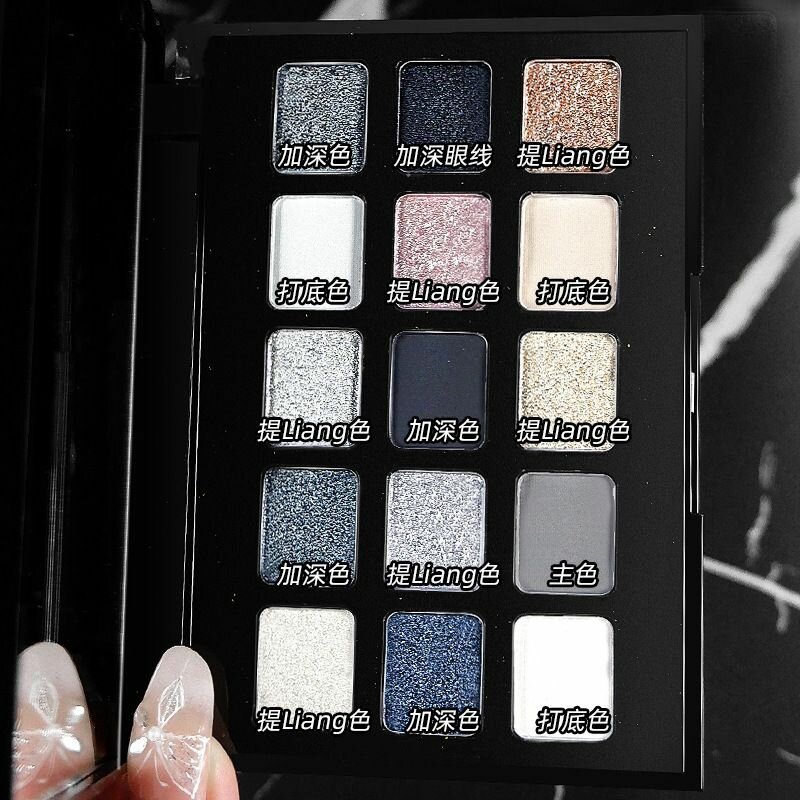 Отзывы на 15-цветная палитра теней для век с блестками, черным и серым оттенками