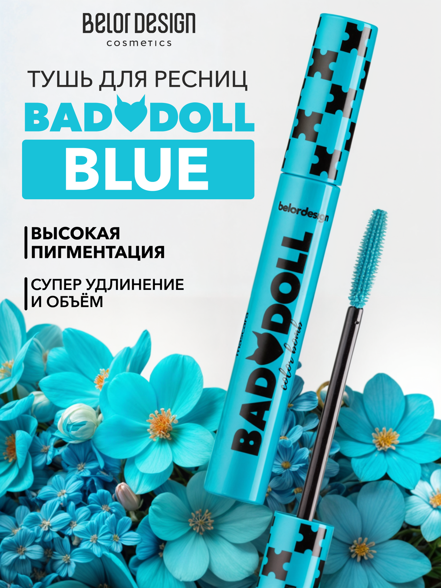 Тушь для ресниц BelorDesign "Bad Doll" цветная объемная голубая 9,3 г информация: