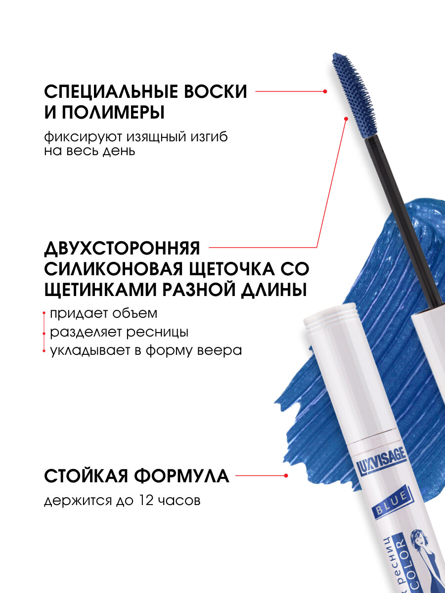 10 цен на Тушь для ресниц LuxVisage Perfect Color Веер пышных ресниц, синяя