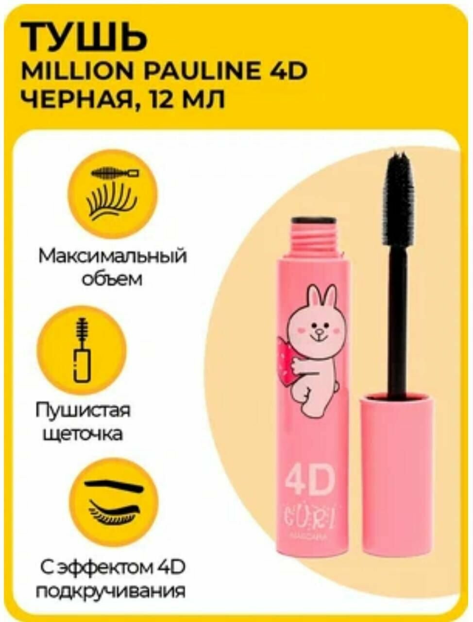 Тушь для ресниц Million Pauline 4D, подкручивающая, черная информация: