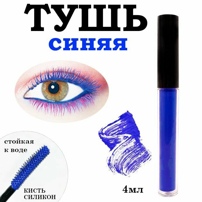 Отзывы на Цветная тушь для ресниц Merilin 30 синяя 4мл силиконовая кисть