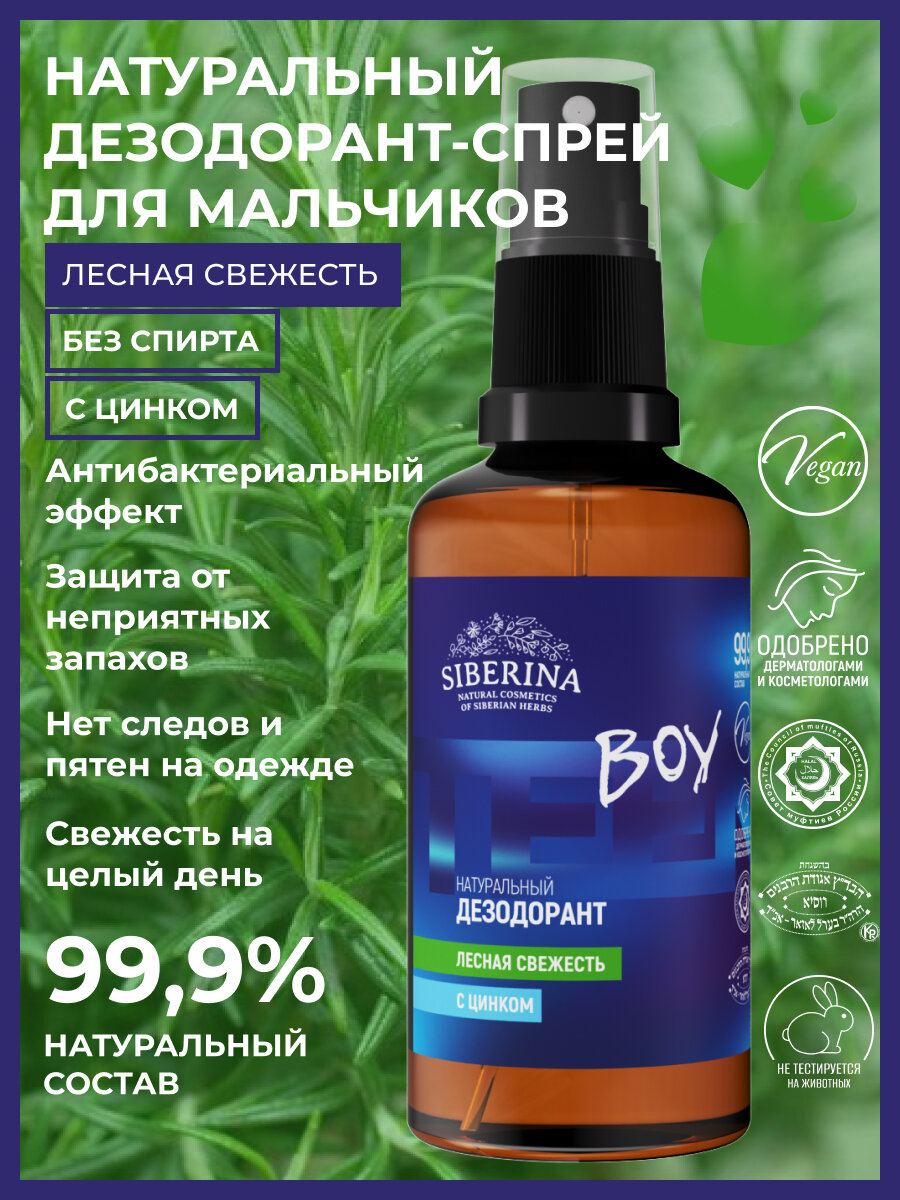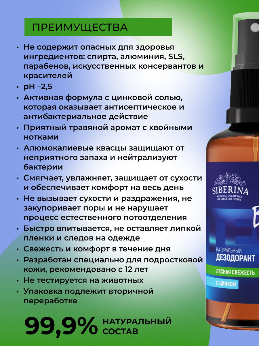 Siberina Натуральный дезодорант спрей для тела антибактериальный с цинком "Лесная свежесть" информация: