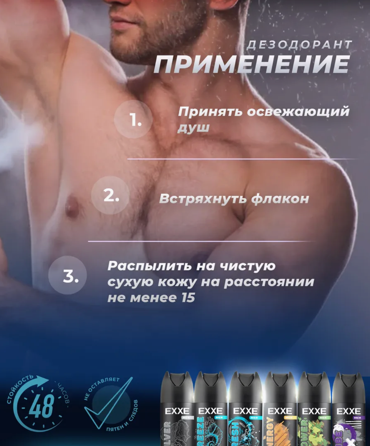10 цен на Дезодорант EXXE "Power", спрей, 3шт, 150мл, для повседневного использования