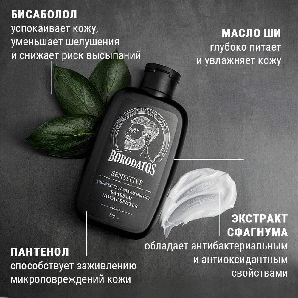 10 цен на Borodatos Бальзам после бритья мужской "ветивер и перец" SENSITIVE, 250 мл