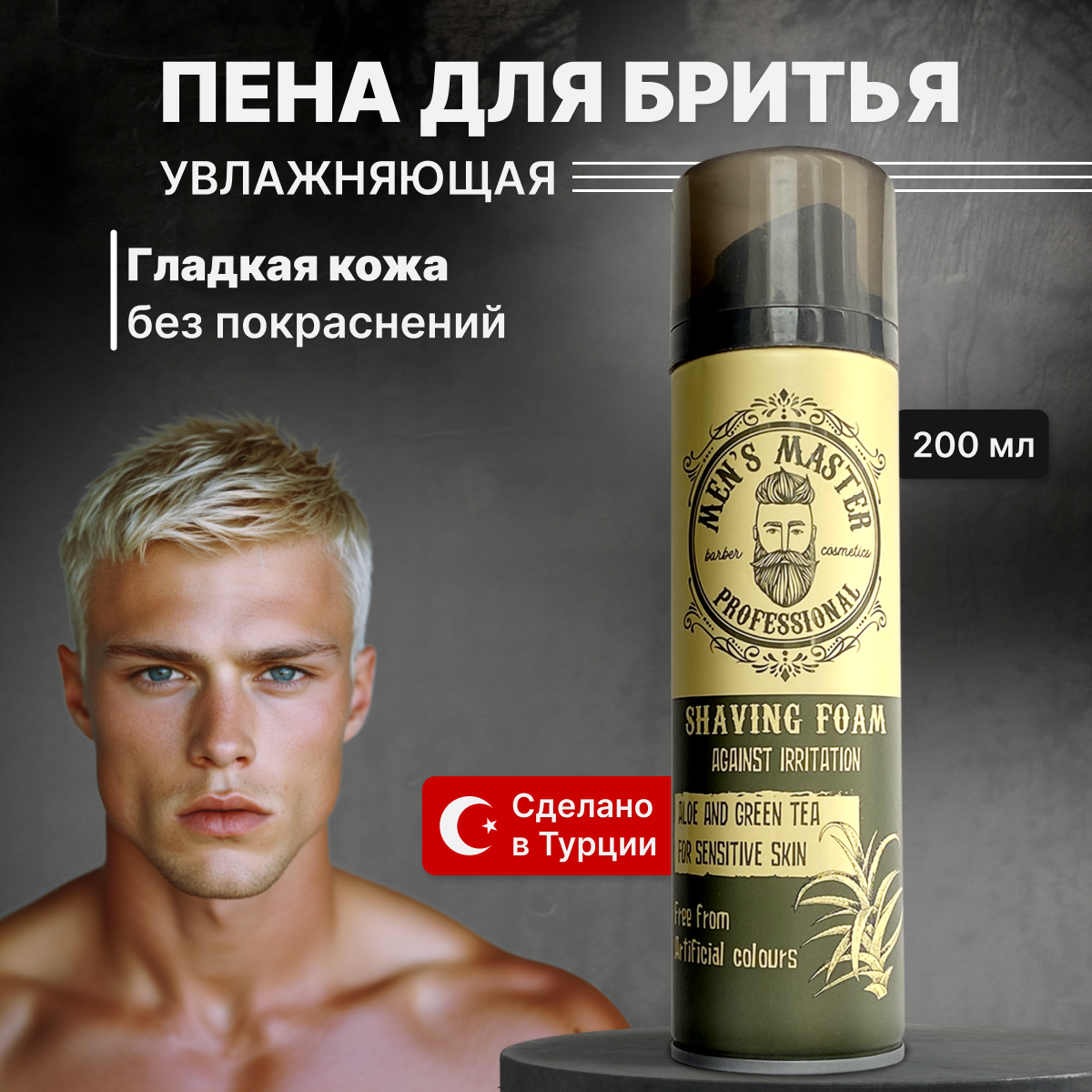 10 цен на MEN’S MASTER / Пена для бритья увлажняющая с алоэ и зелёным чаем, для чувствительной кожи лица, 200 мл