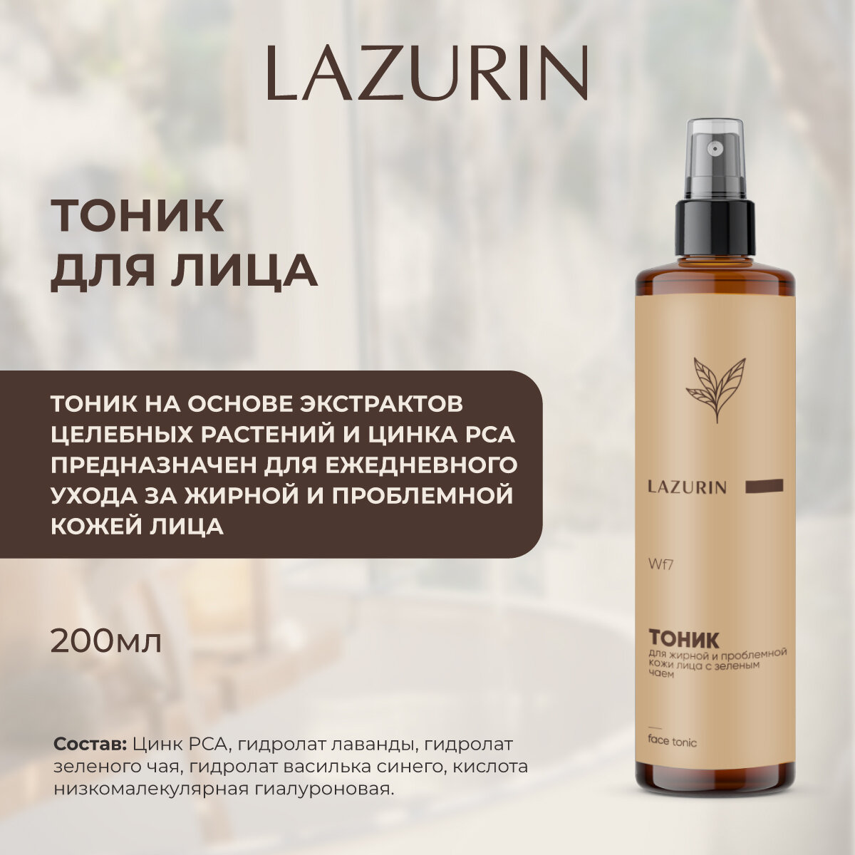 Тоник LAZURIN, для жирной и проблемной кожи лица, с зеленым чаем 200мл. информация:
