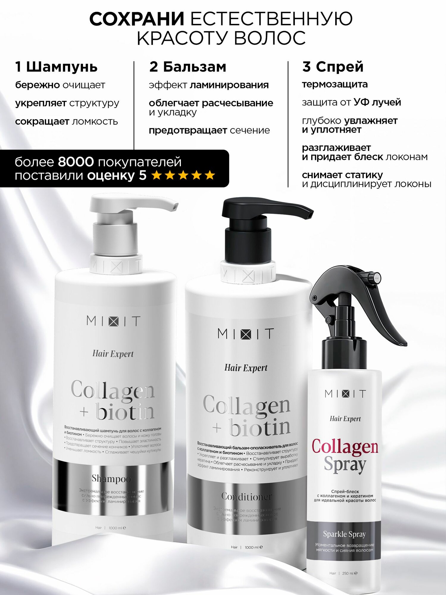 MIXIT Подарочный набор косметики для волос шампунь бальзам и спрей с кератином Hair Expert информация: