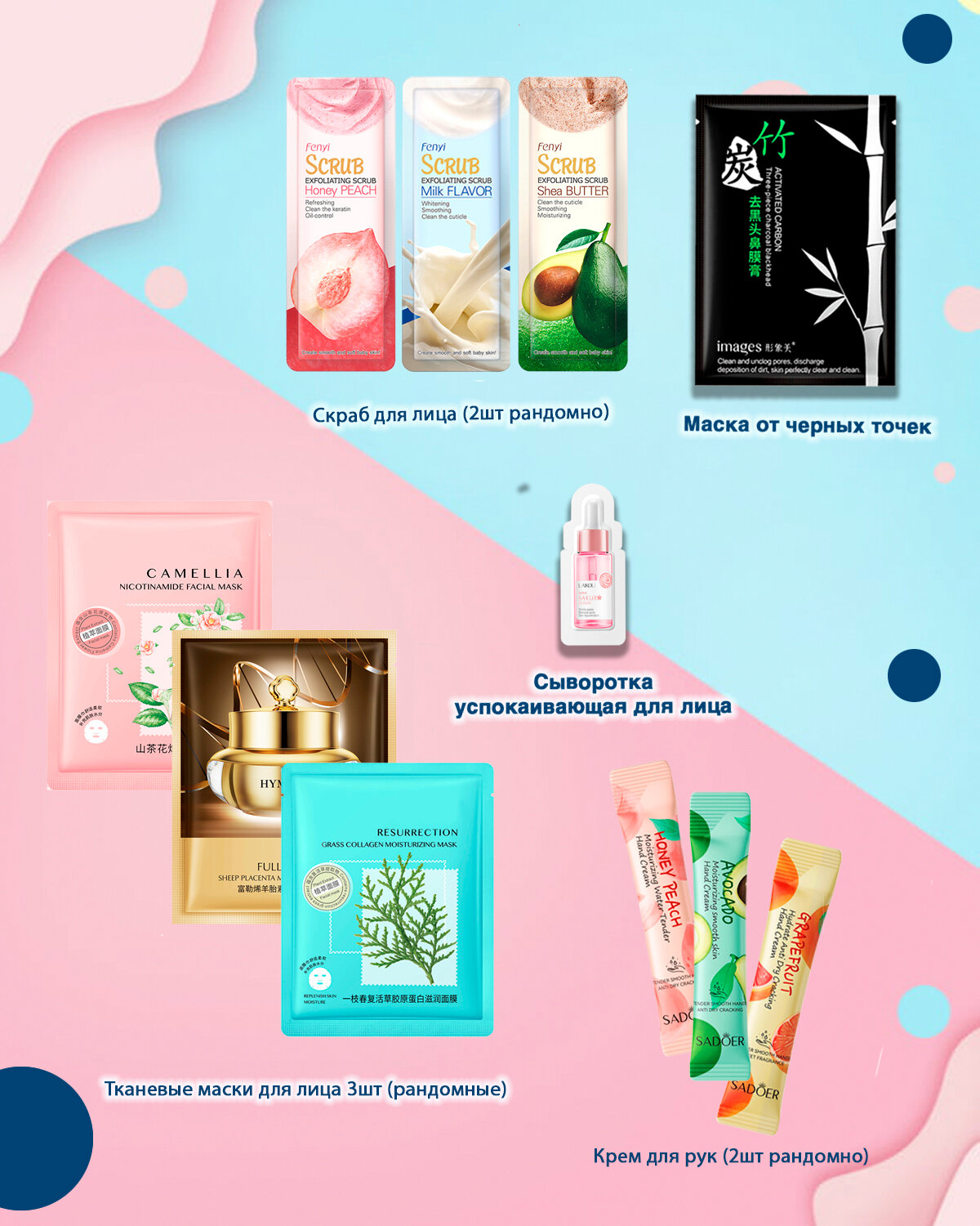Подарочный набор мини уходовых средств для лица для девушки, женщины. Бьюти бокс. информация: