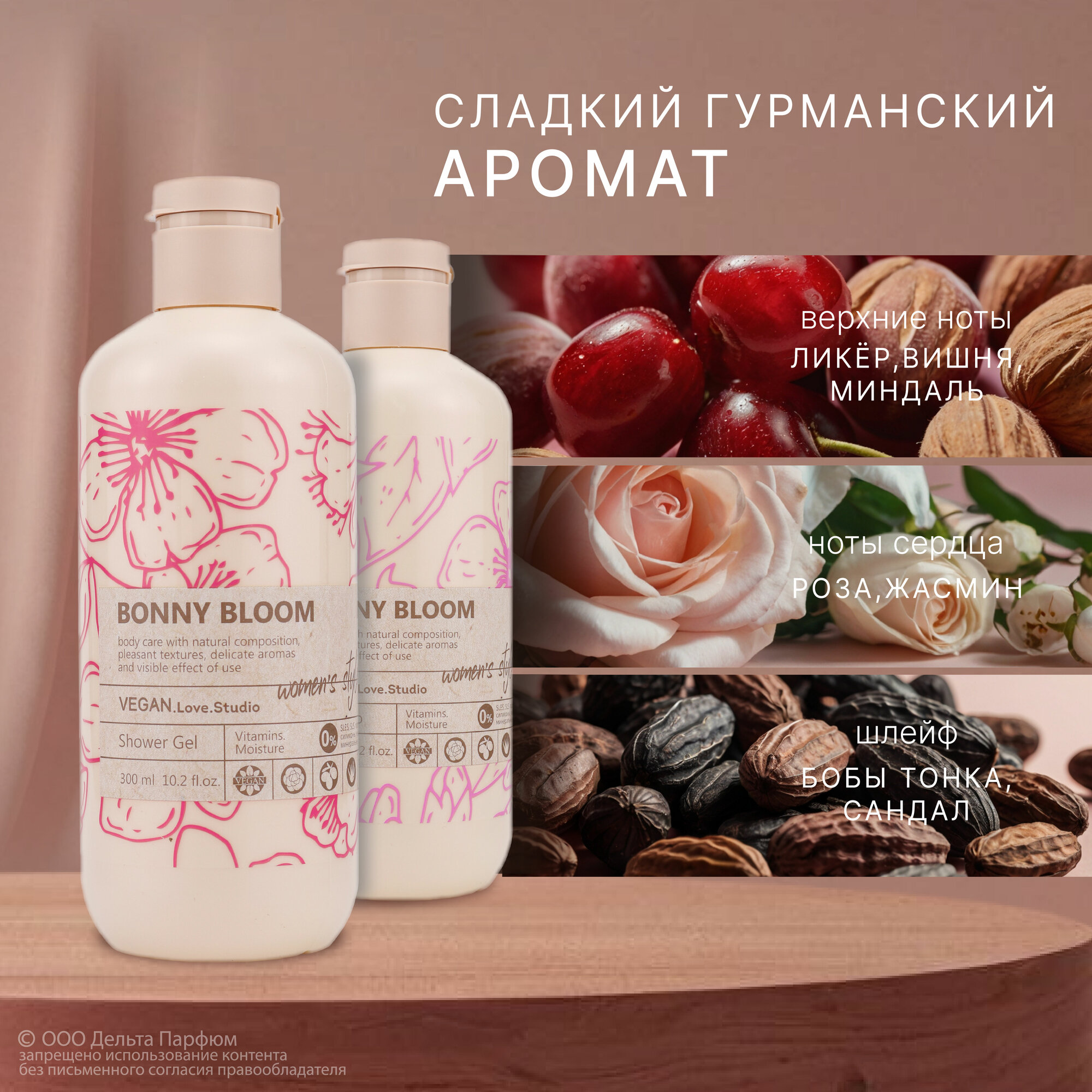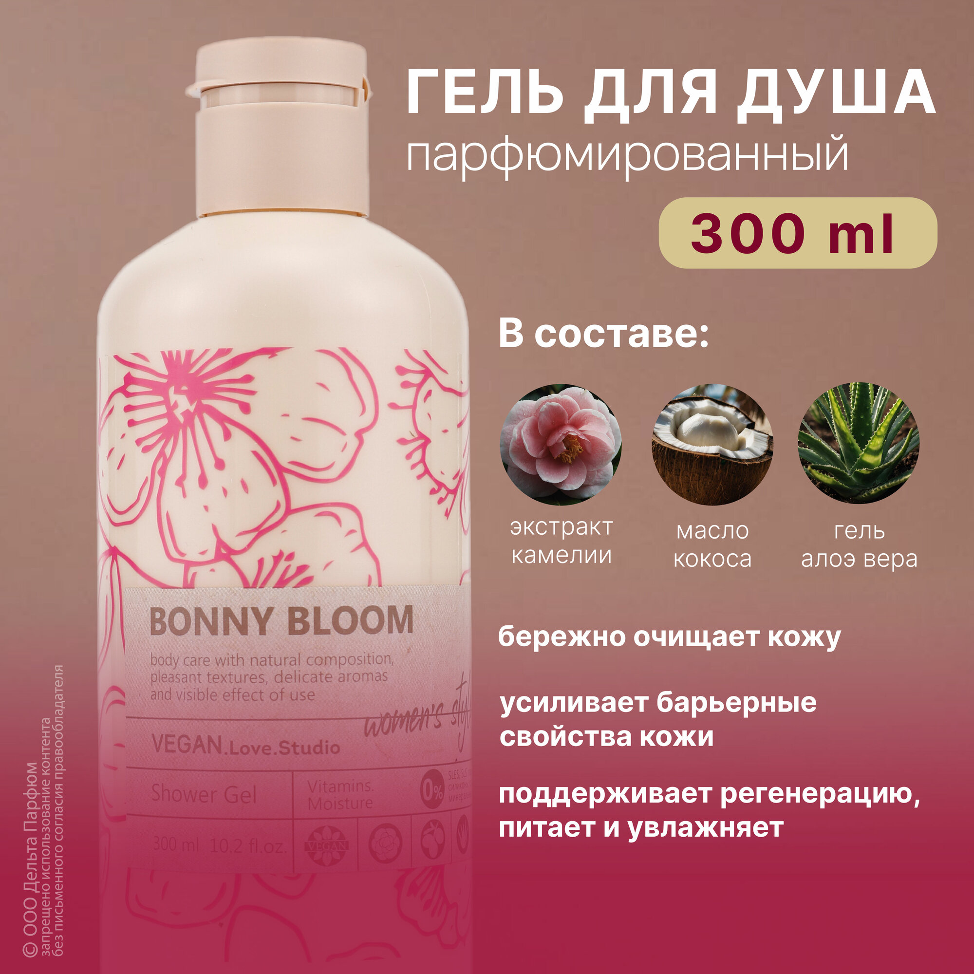 Косметический набор женский VEGAN.Love.Studio BONNY BLOOM гель для душа 300мл + шампунь 300мл, 600 мл информация: