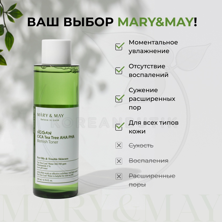 Отзывы на Набор для лица с чайным деревом | MARY&MAY Vegan Cica Teatree Toner Special Set (Тонер 2 шт, крем для век)