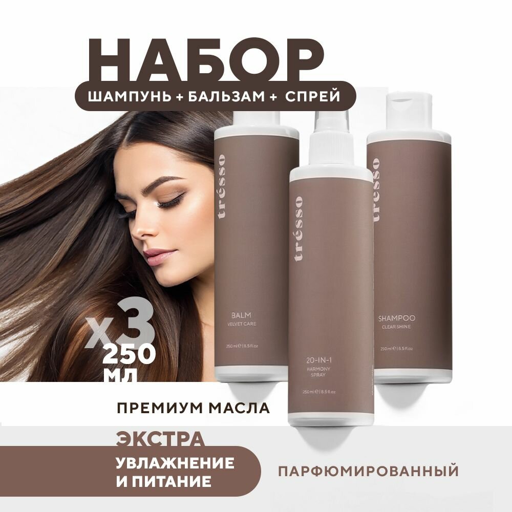10 цен на Tresso Набор увлажняющий Шампунь, Бальзам и Спрей для волос женский