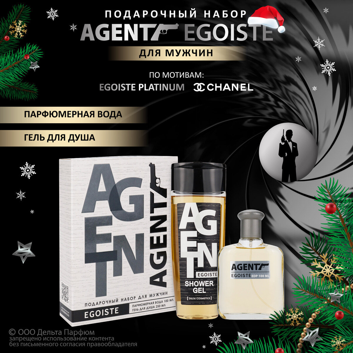Косметический набор мужской Agent Egoiste (гель для душа 250 мл + парфюм вода от Delta Parfum 100 мл) информация: