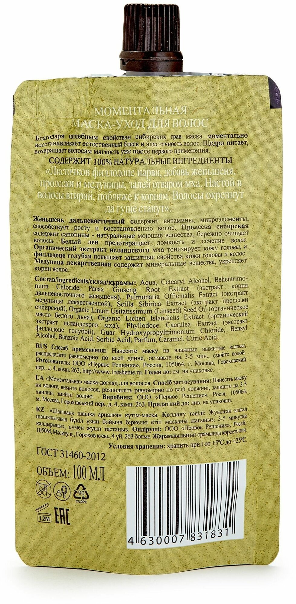 Маска для волос "Рецепты бабушки Агафьи: Банька Агафьи", моментальная, 100мл информация: