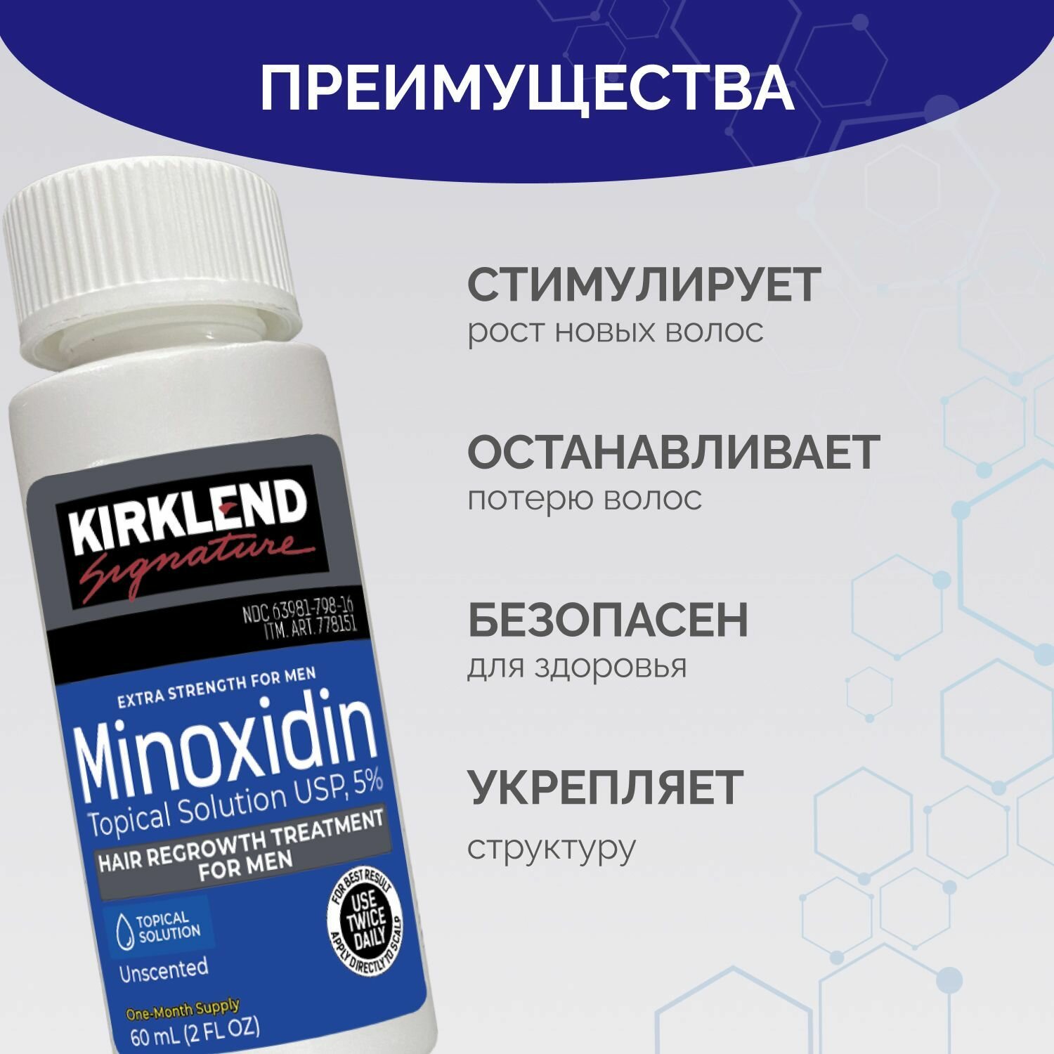 Kirklend Signature для роста волос, для всех типов волос, активация роста информация: