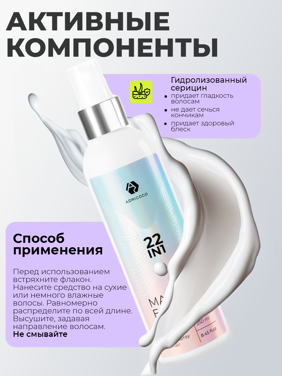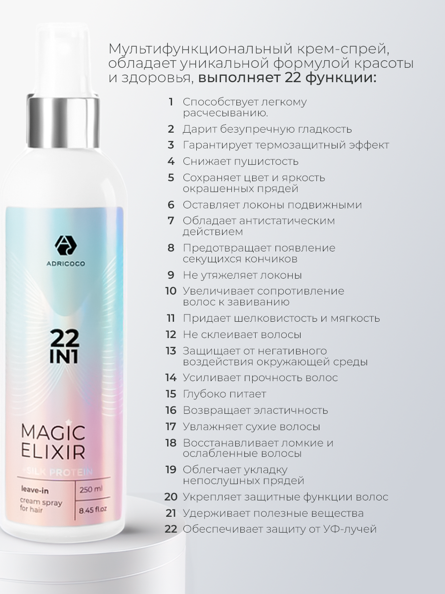 Adricoco, мультифункциональный крем-спрей для волос 22 в 1 MAGIC ELIXIR, 100 мл информация: