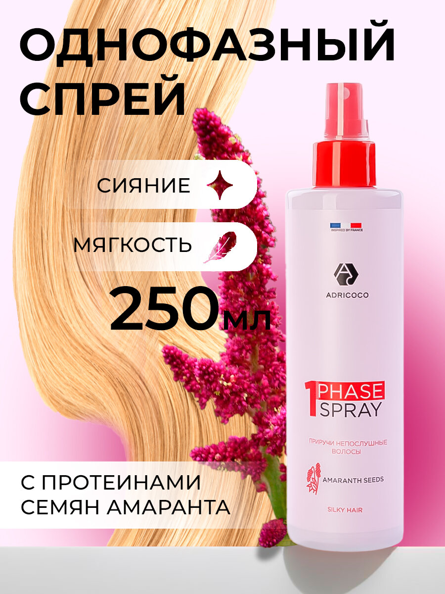 10 цен на Adricoco, однофазный спрей для легкого расчесывания с протеинами семян амаранта, 250 мл
