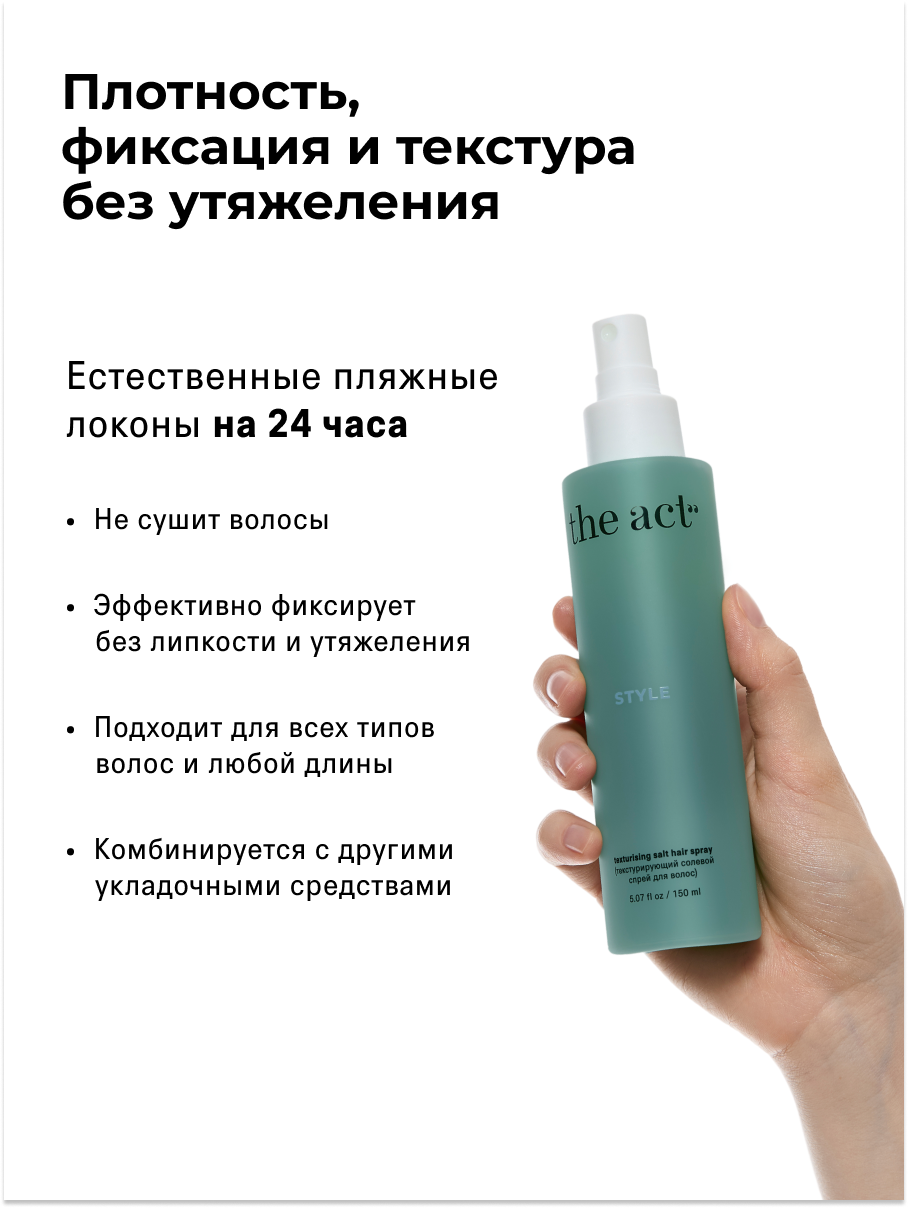 Отзывы на Текстурирующий спрей для волос с морской солью The Act, 150 мл