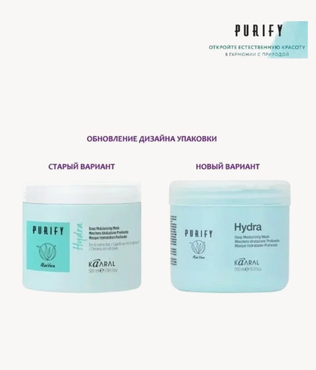 Kaaral Purify Hydra Интенсивная маска для сухих и густых волос увлажняющая, питательная, 500 мл информация: