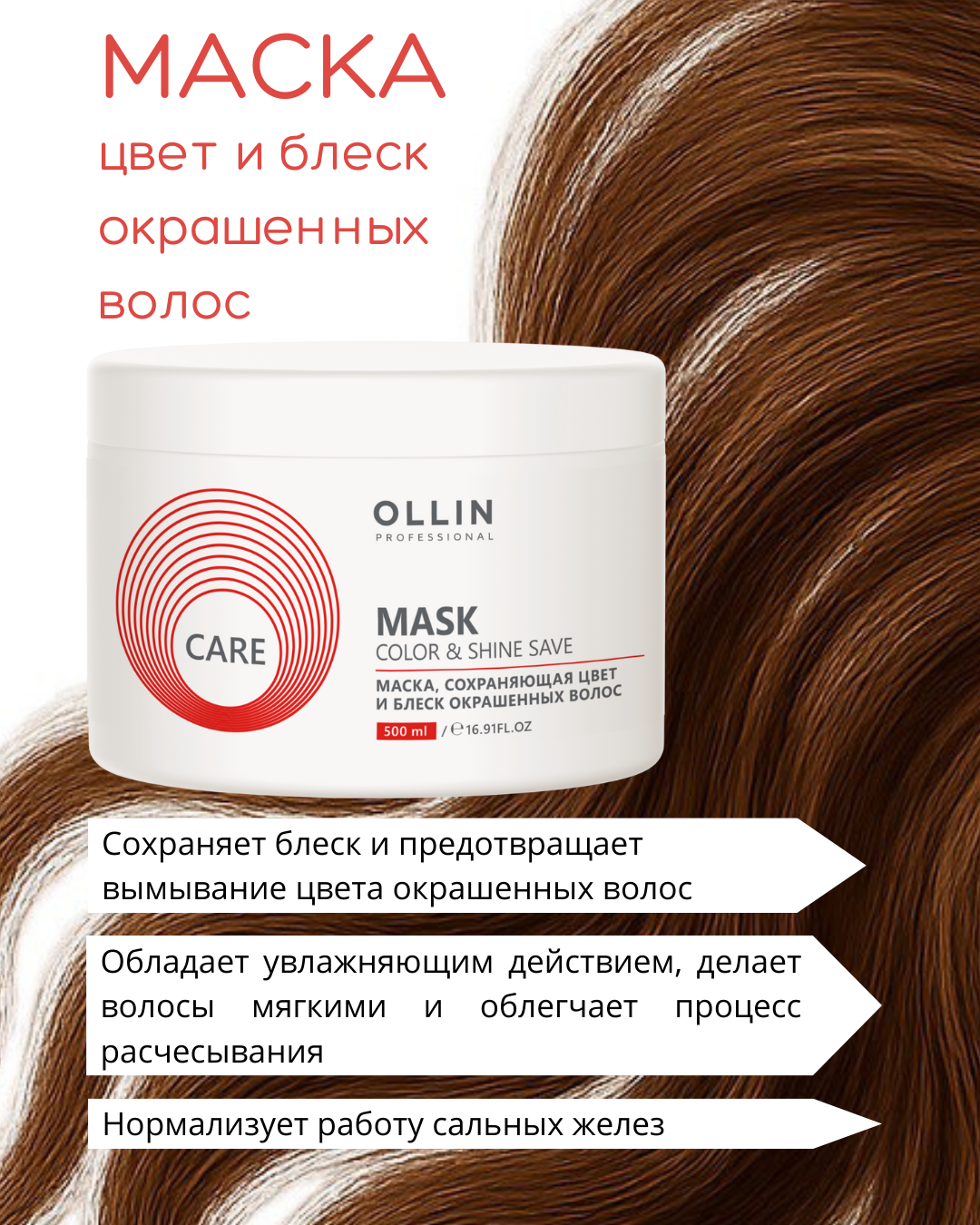 OLLIN Professional Care Color and Shine Save Маска, сохраняющая цвет и блеск окрашенных волос, 500 мл информация: