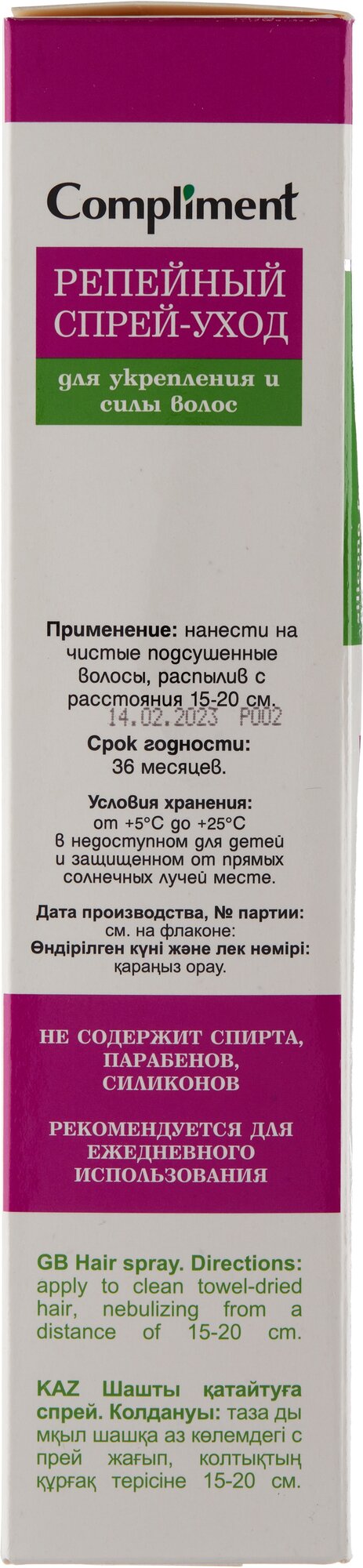 Compliment Репейный Спрей-уход для волос против выпадения, 200 мл информация: