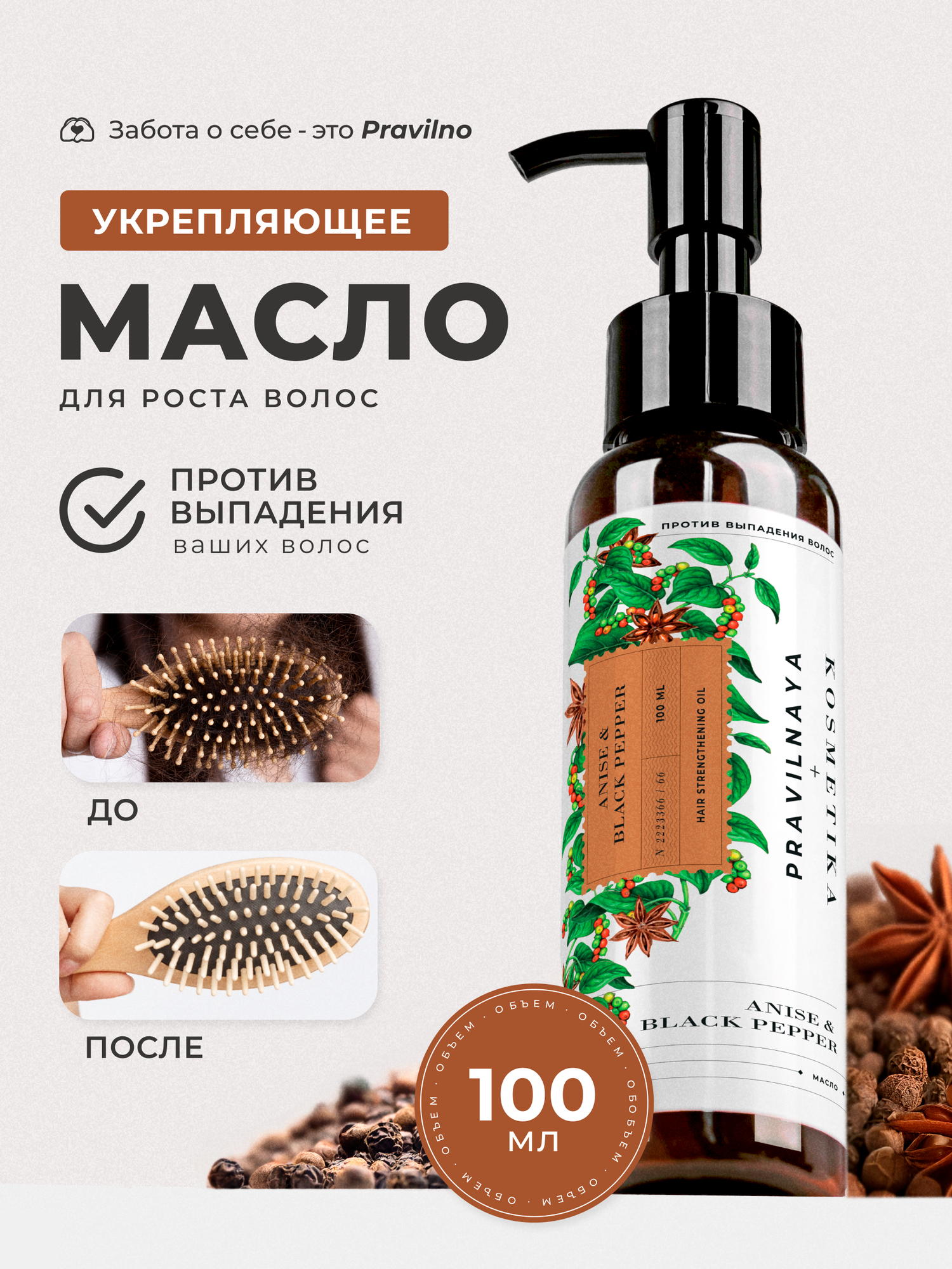 10 цен на Масло для кожи головы Pravilnaya Kosmetika для роста, восстановления и укрепления волос, Анис & Черный перец, 100 мл.