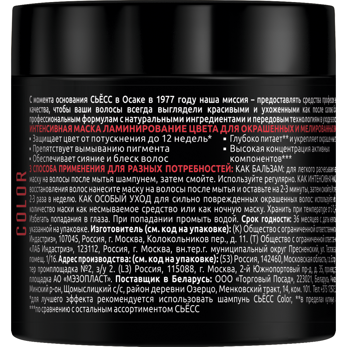 СЬЁСС Сolor интенсивная маска для окрашенных волос Ламинирование цвета, 500 г, 400 мл, банка информация: