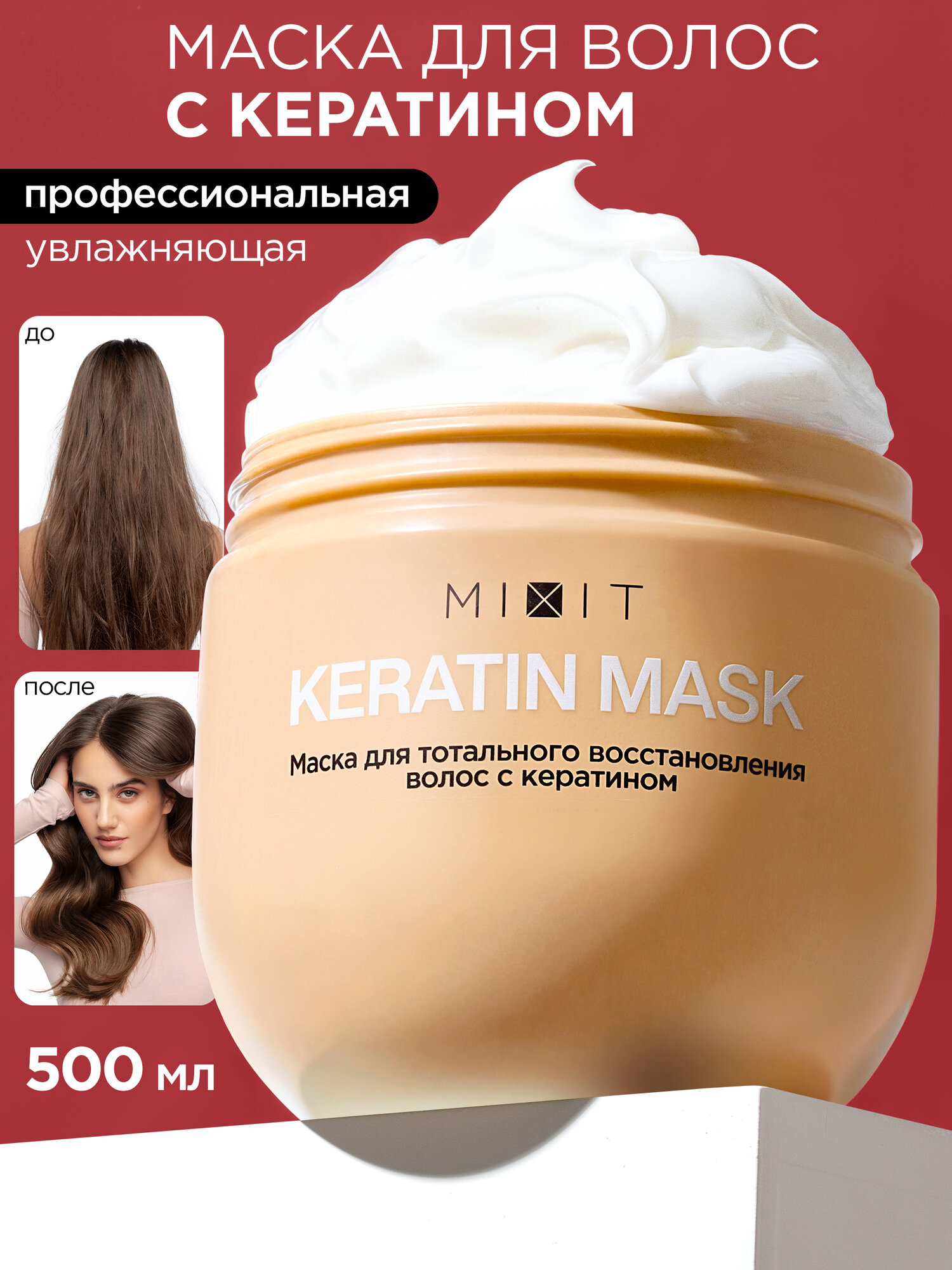 10 цен на MIXIT Маска для волос восстанавливающая с кератином. Профессиональный увлажняющий и укрепляющий уход RESTART, 500 мл