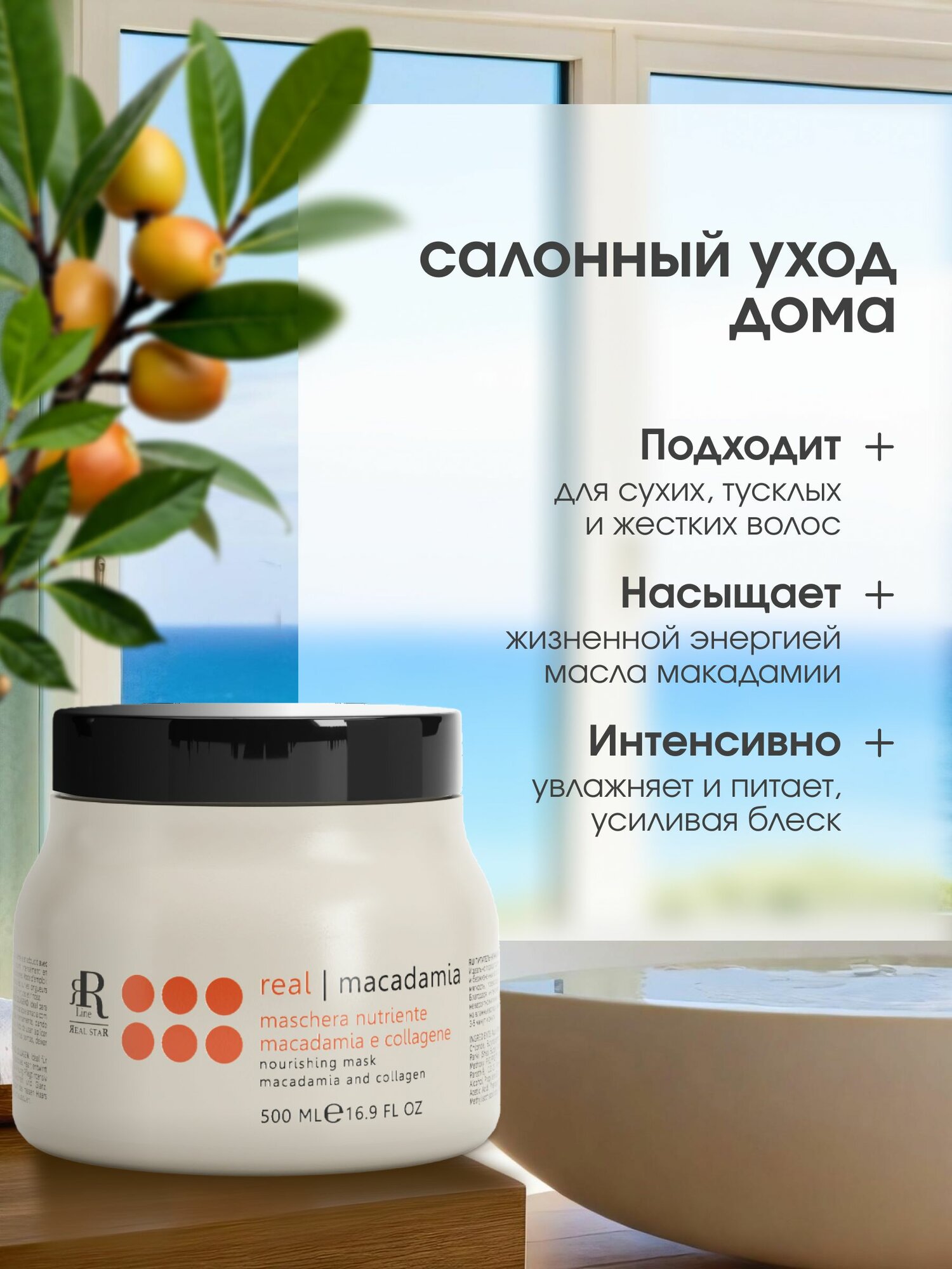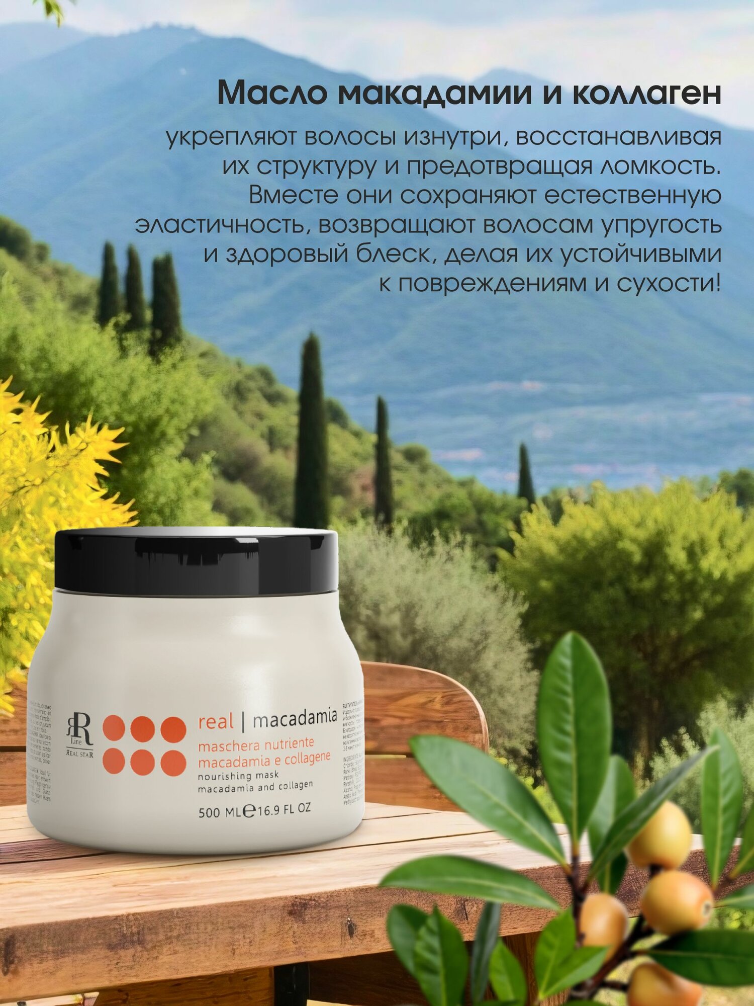 Маска для волос увлажняющая и питательная RR Line Real Macadamia, 500 мл информация: